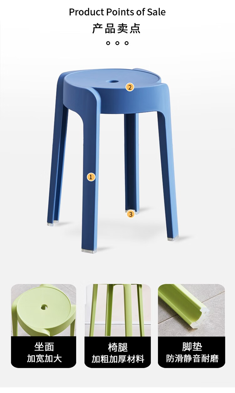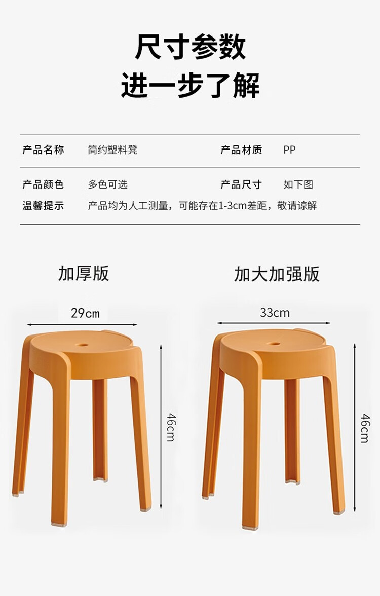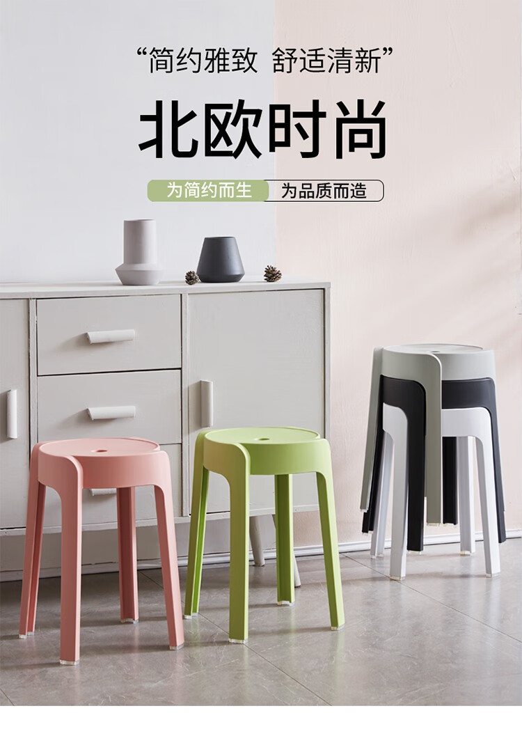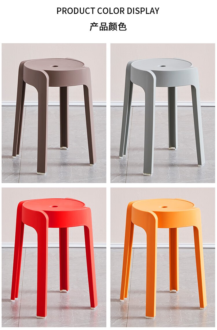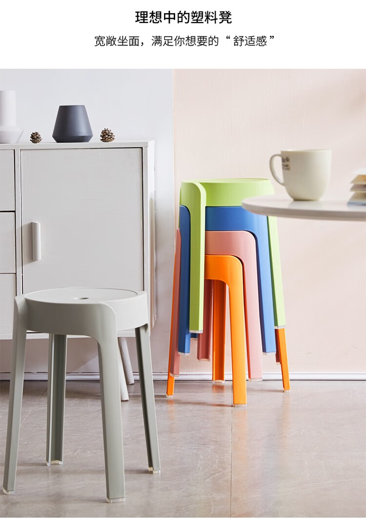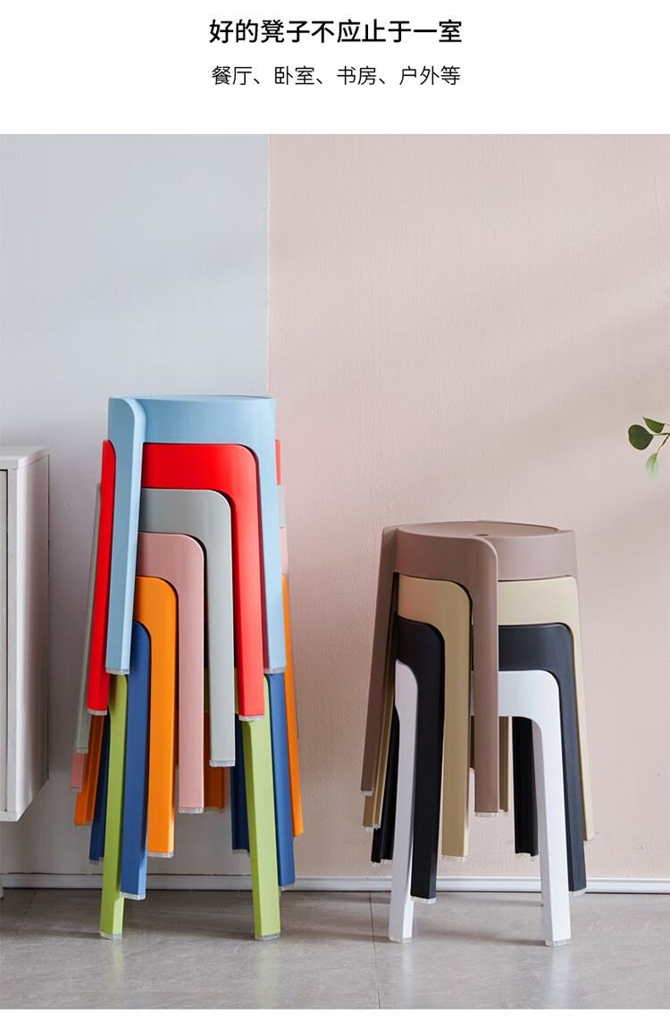 商品名称:全品屋【销量NO.1】凳子家用塑料凳子板凳加厚凳子餐凳圆凳可叠放风车凳 加厚防滑耐磨4把装-黑白灰卡其