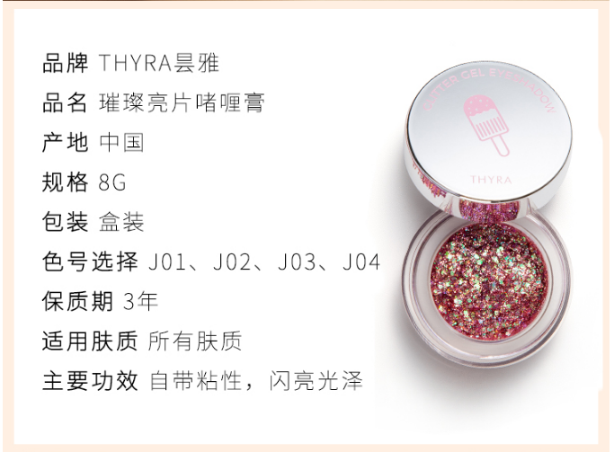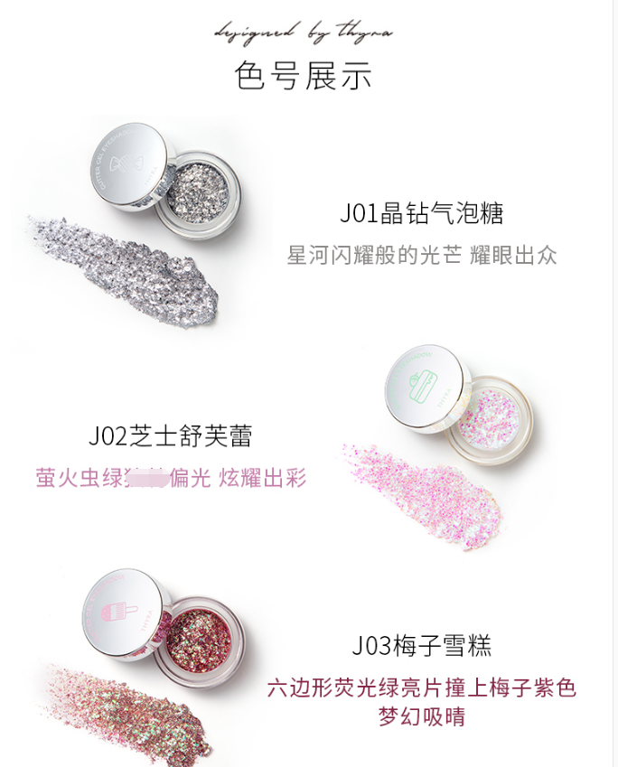 商品名称:昙雅(Thyra)璀璨亮片啫喱膏亮晶晶大亮片面部贴免胶水 #J02芝士舒芙蕾