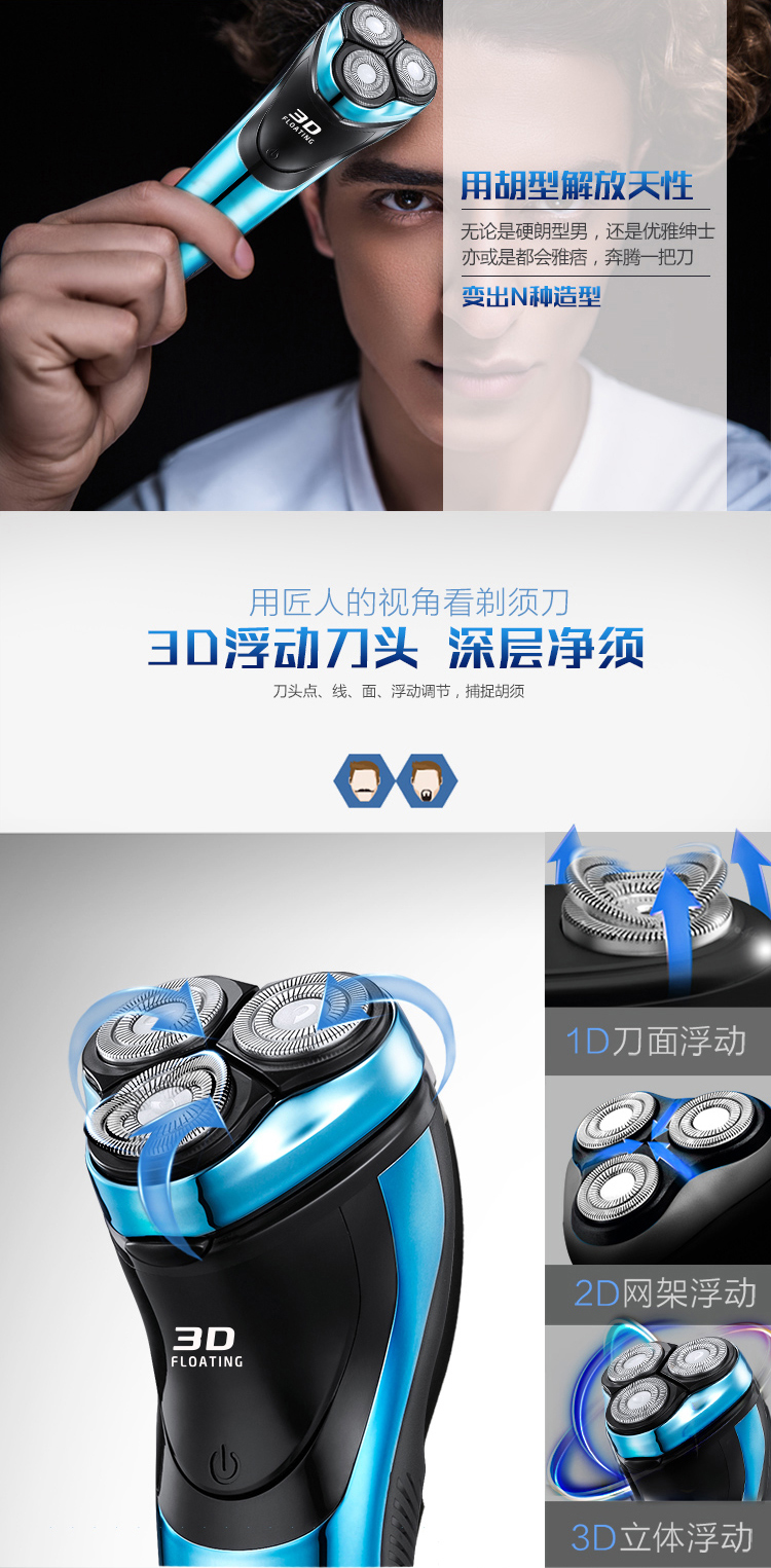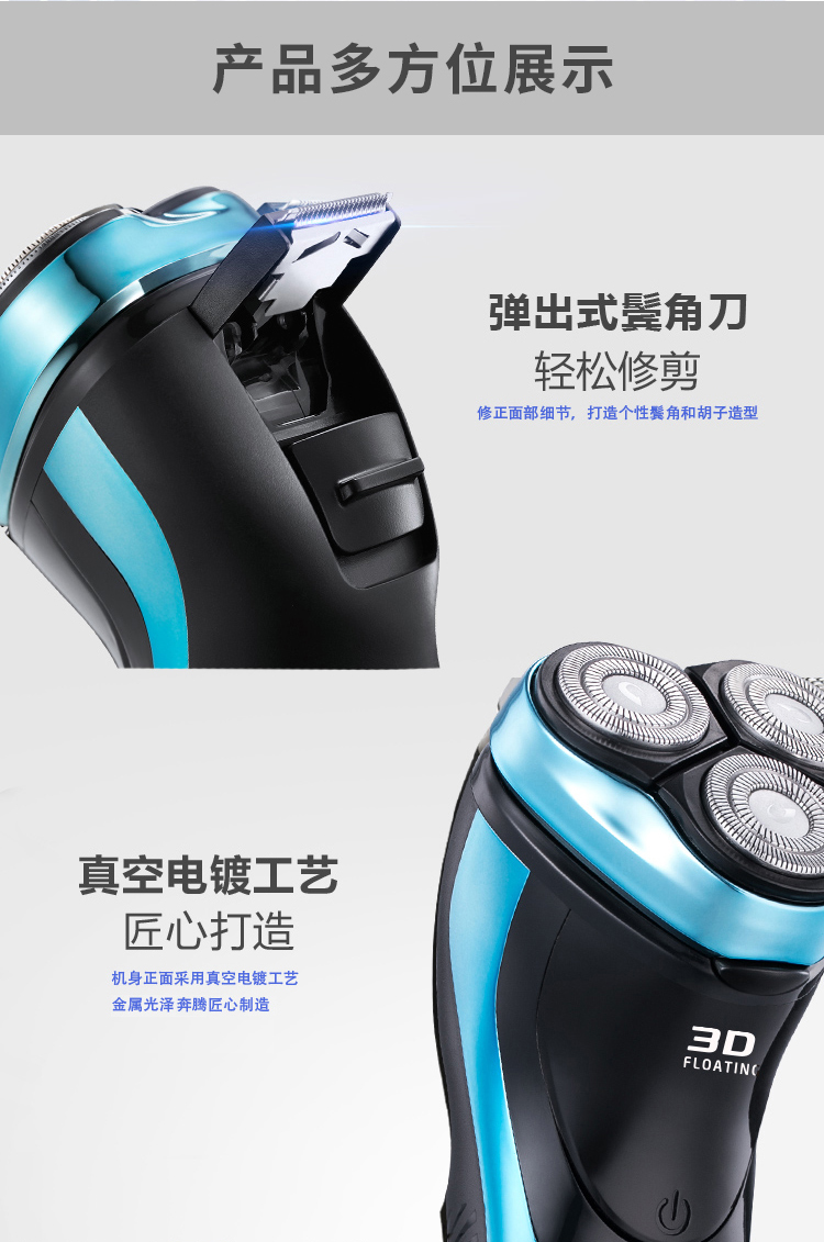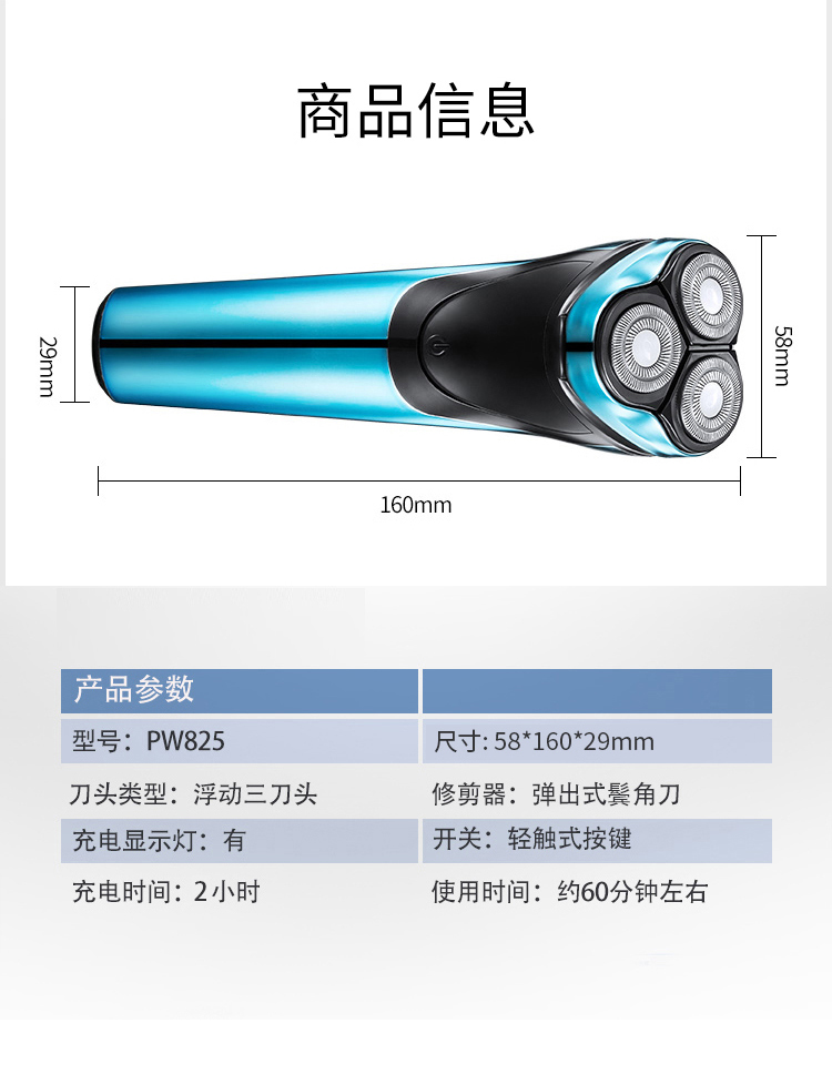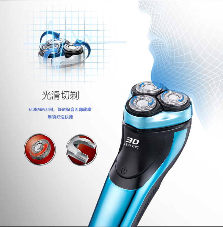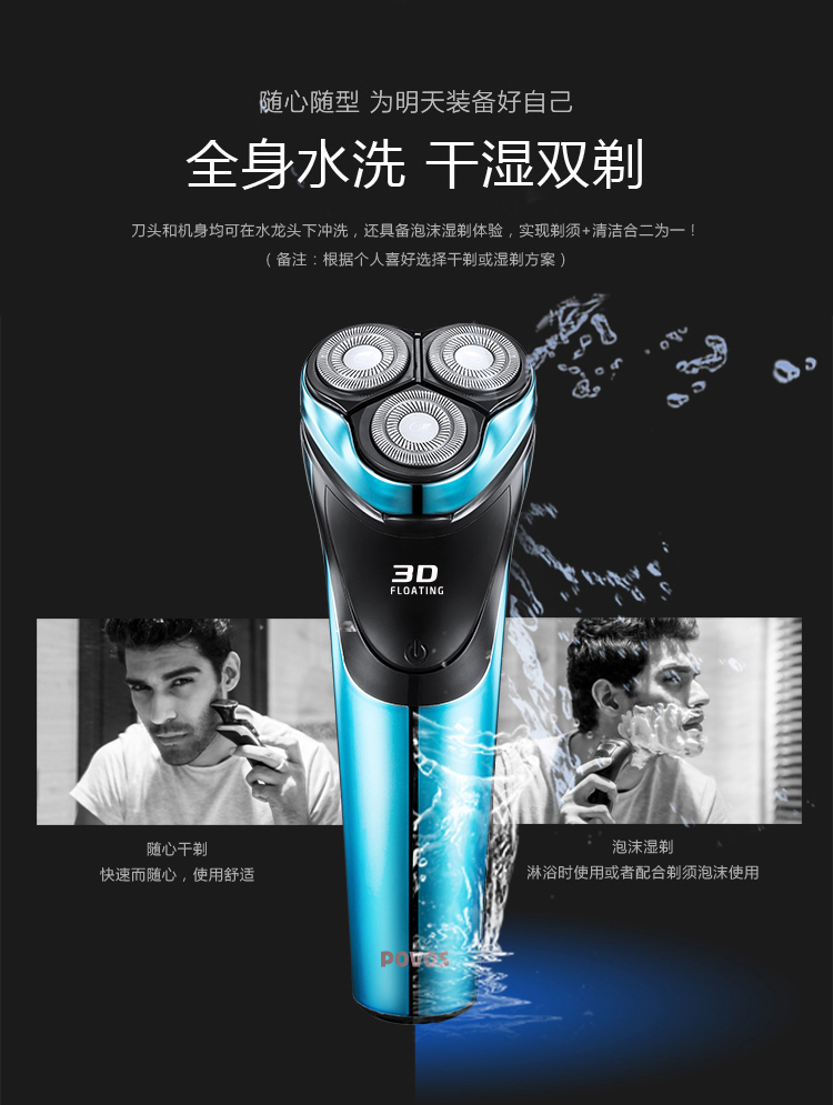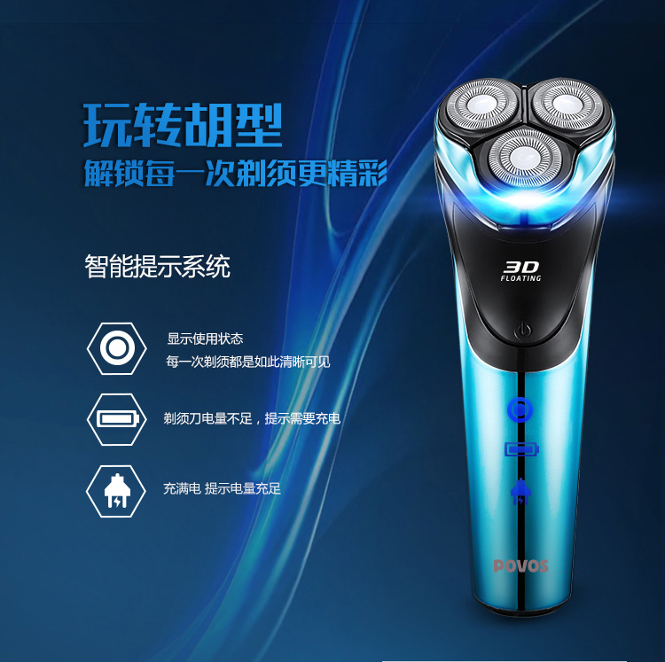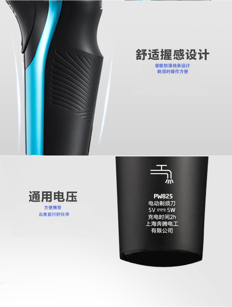 奔腾(POVOS) PW825电动剃须刀 防夹须 浮动三刀头刮胡刀