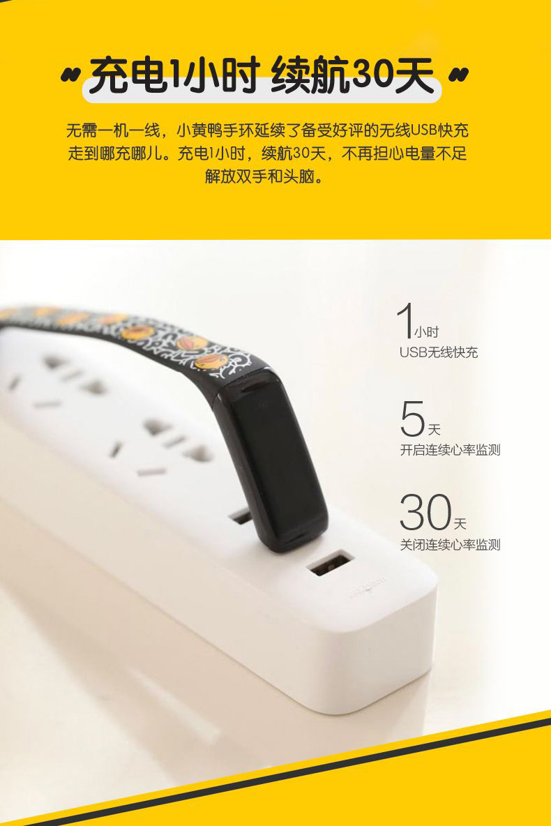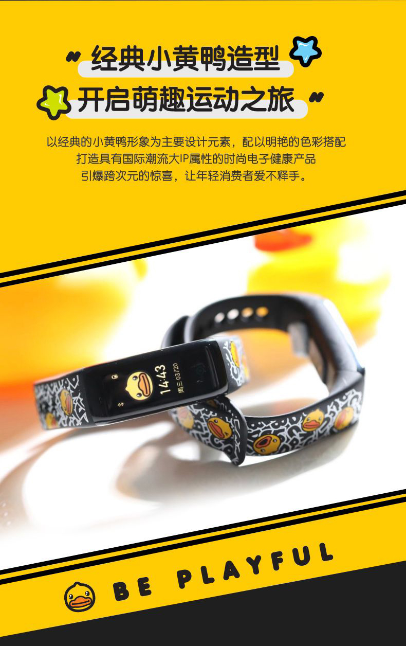 Duck 小黄鸭手环5S 智能手环 心率彩屏触控运动手环 快捷支付 15项运动识别 有氧监