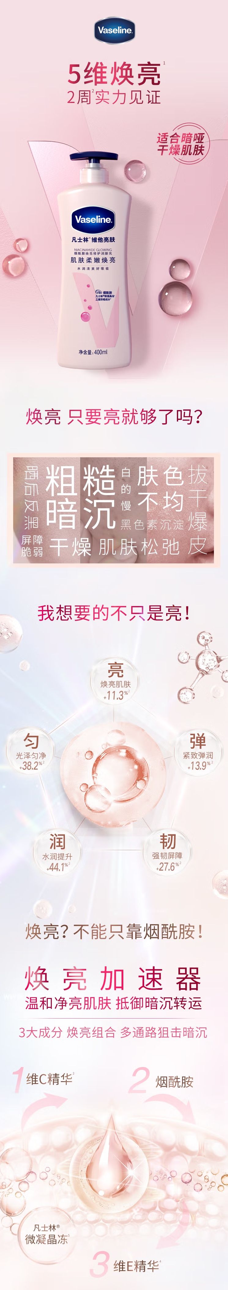 凡士林 维他亮肤亮采修护润肤露 400ml (计价单位:瓶) 混色