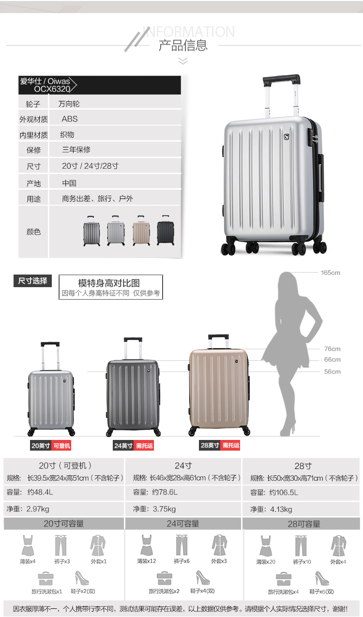 高端静音万向轮拉杆箱OCX6320 24寸