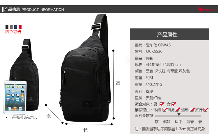 休闲挎包骑行包 男女单肩旅行包 潮户外小包 OCK5530 胸包