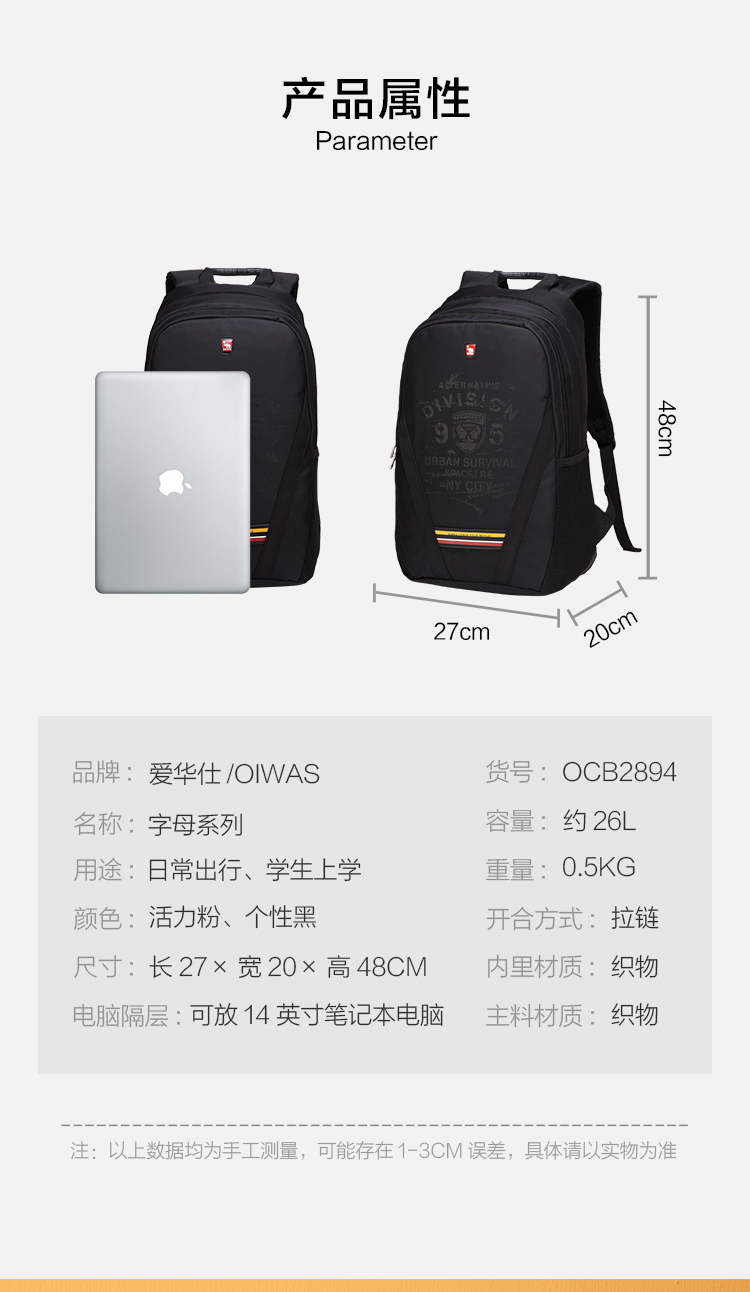 双肩背包 休闲学院书包 户外旅行背包 OCB2894