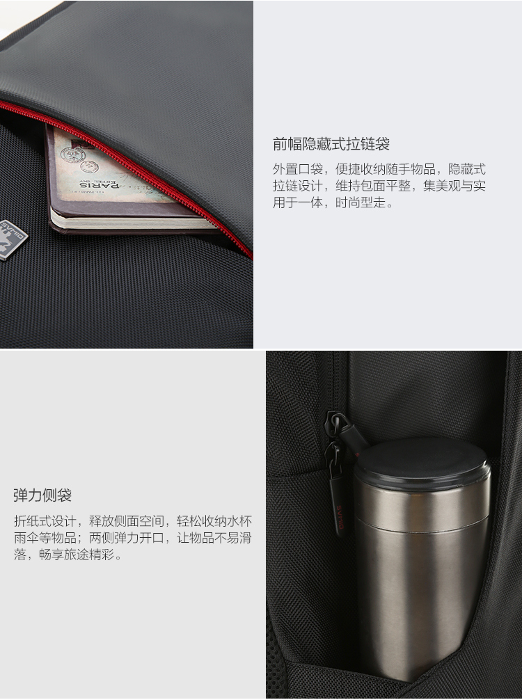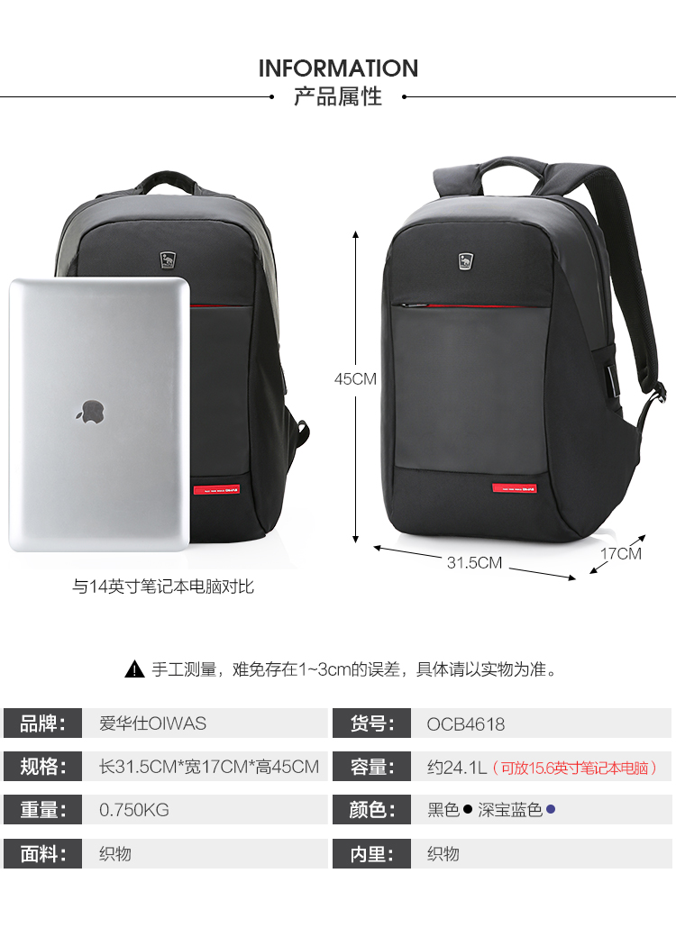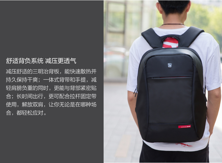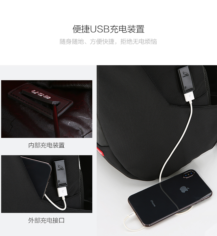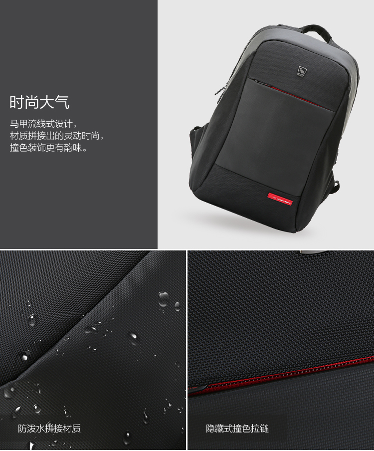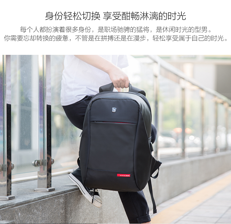 双肩包男士商务大容量SUB充电接口背包 OCB4618 黑色